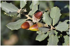 Tanto las encinas, como los alcornoques y los robles, además de proporcionar un microclima ideal para los cerdos con su sombra, producen bellotas. El período de mayor producción se da entre los meses de septiembre y febrero.
